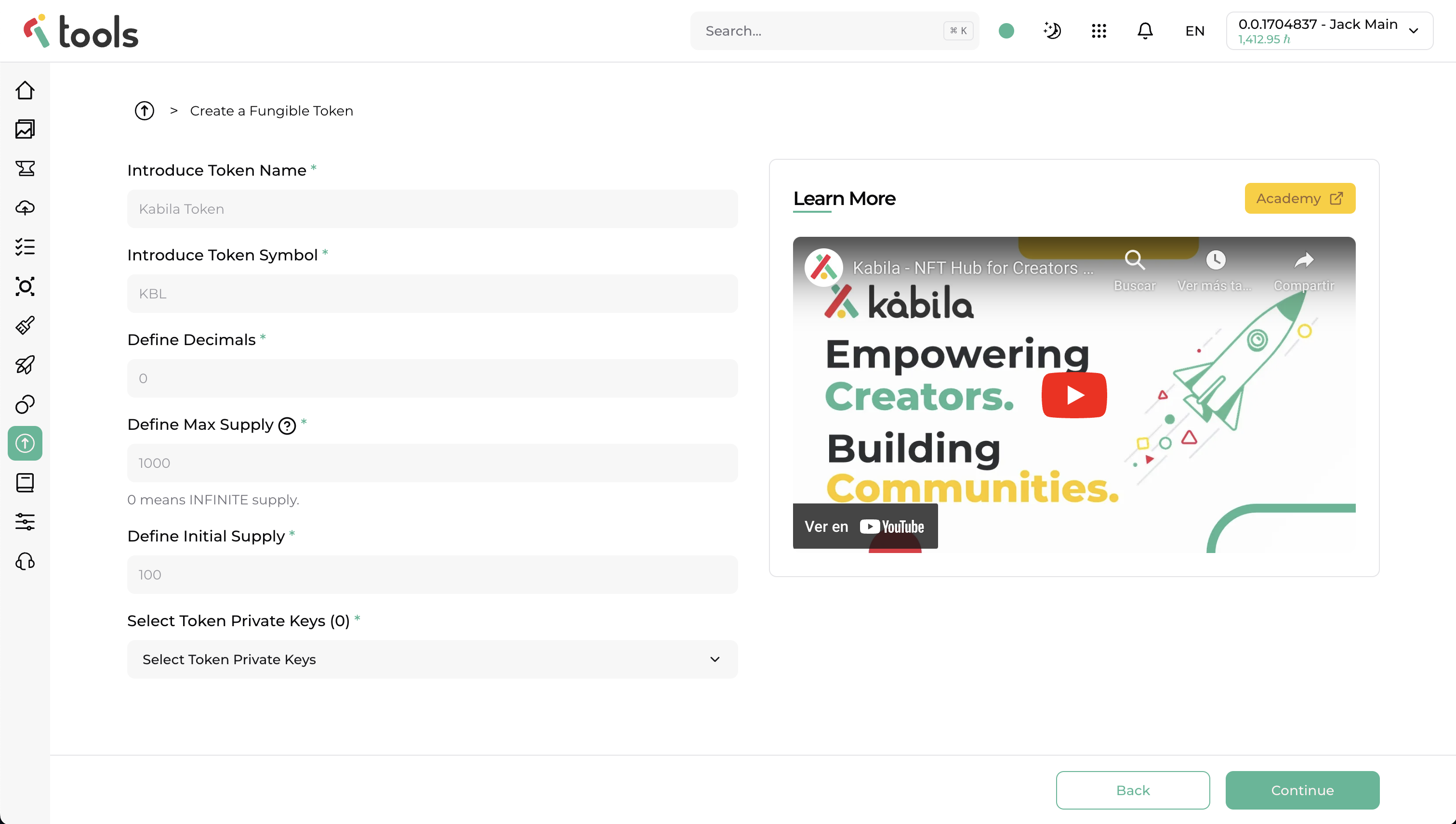 If you click on "Create a Fungible Token", you'll need to fill the following details: