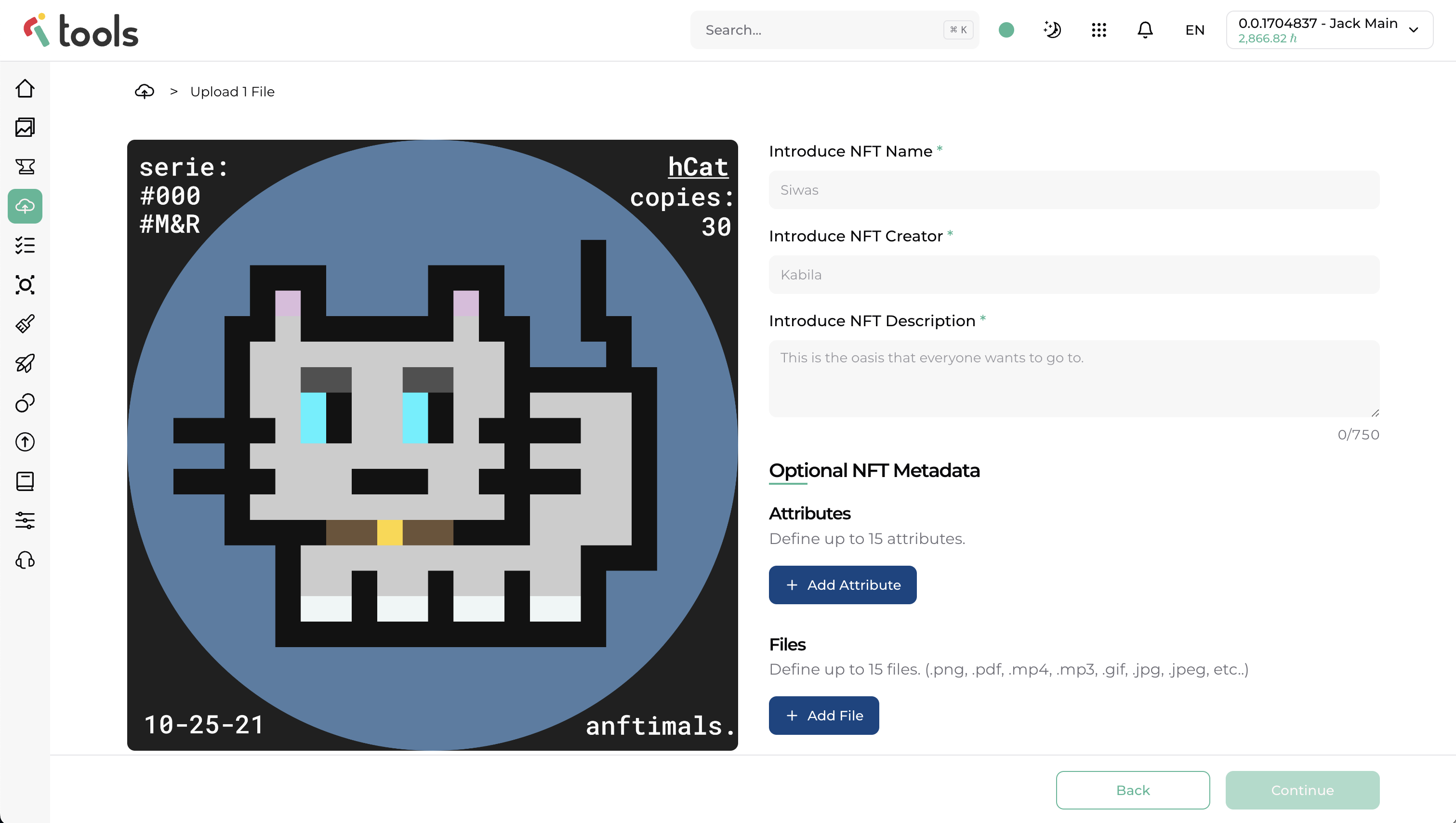 Then click Continue and in a few seconds your NFT Metadata will be uploaded to IPFS, and you'll get your unique CID (Content Identifier).